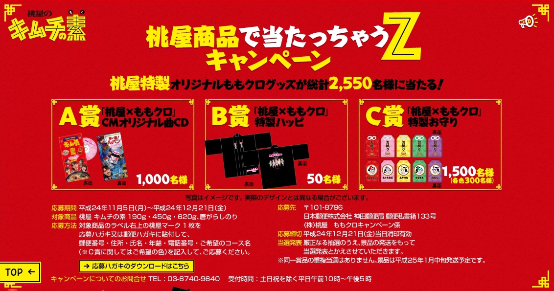 桃屋特製 ももクログッズ応募期間は11/5~12/21までですので