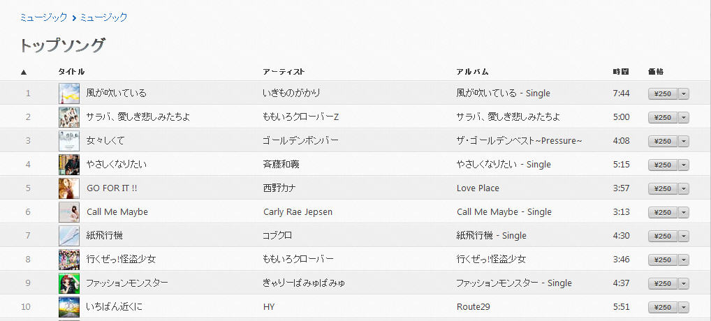 iTunes Music Store 現在のチャート