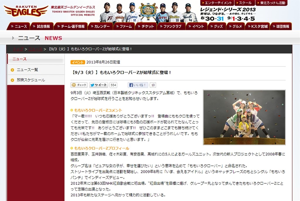 あっ、あと、一般野球ファンにひんしゅくを買わないよう自制心を持った行動を強く望む!モノノフのみならずももクロまでひんしゅくを買うことになるから!