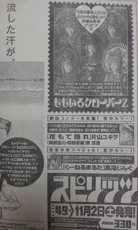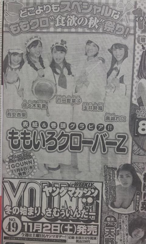 11月2日発売のスピリッツ&ヤンマガの表紙&巻頭グラビアはももクロちゃん! これは楽しみ! http://t.co/EptmZfNWTf http://t.co/i11pHBzyzr