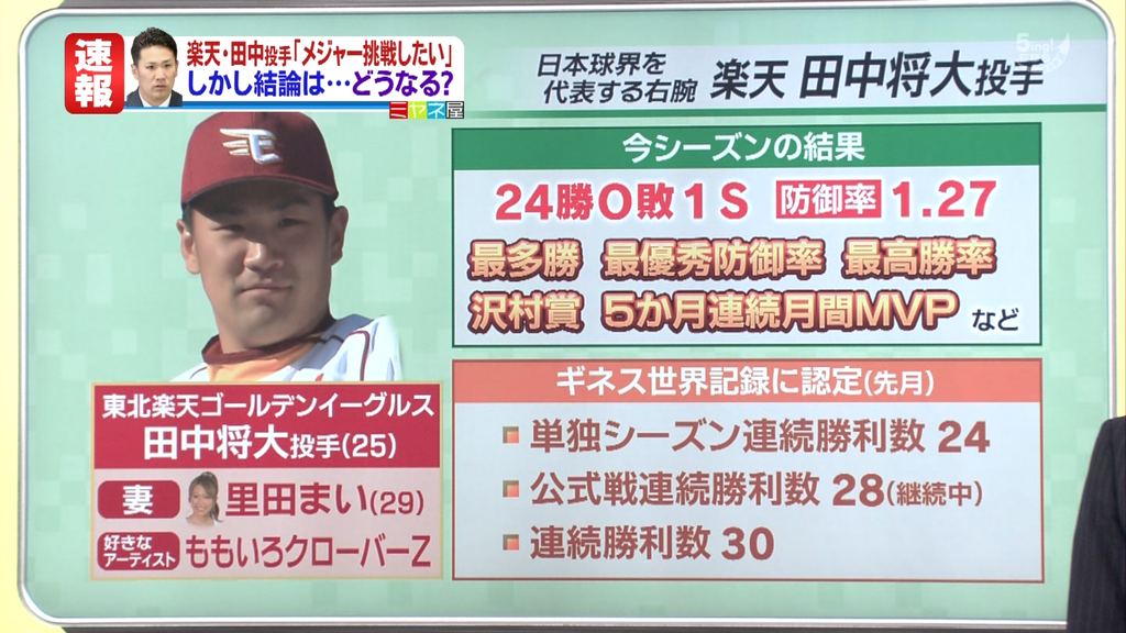 ミヤネ屋、マー君の紹介(記録など)で普通に