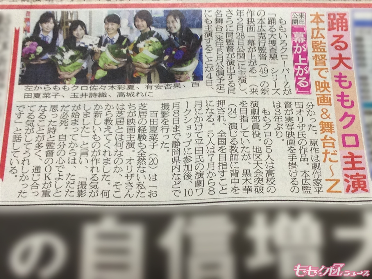 「幕が上がる」プロジェクト記事の載っていたスポーツ新聞を購入。