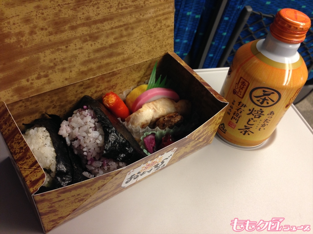 乗車時間はわずかでしたが腹ごしらえ。朝のおにぎり弁当400円。