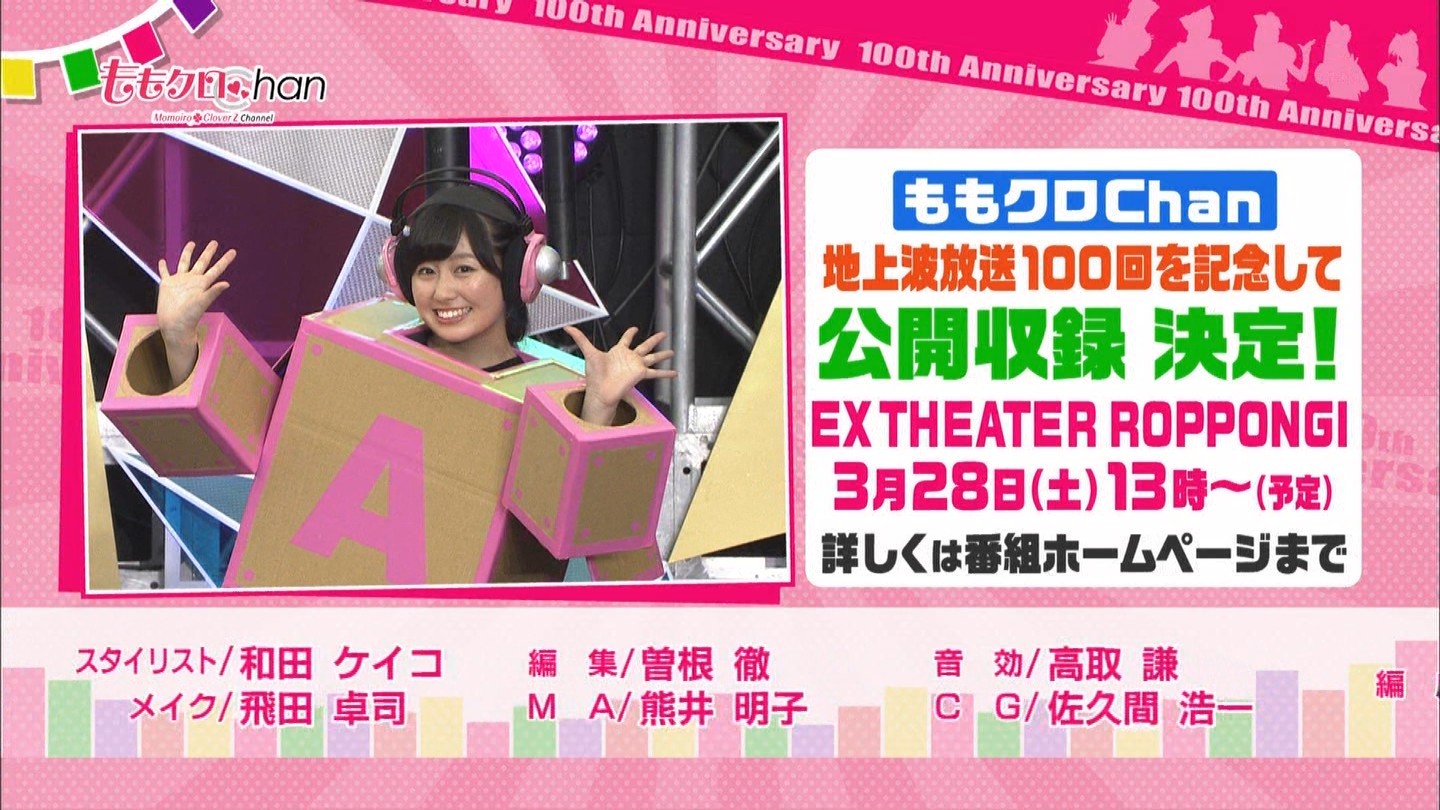 テレビ朝日『ももクロChan』地上波OA第100回を記念して3月28日(土)に公開収録を行ないます!観覧募集…詳しくは→ http://t.co/U86r381U2U #momoclo #tvasahi