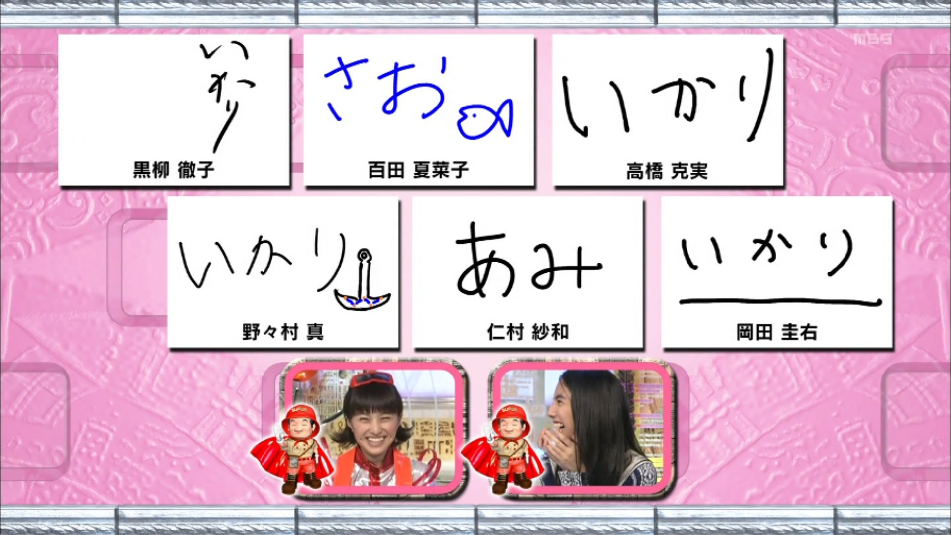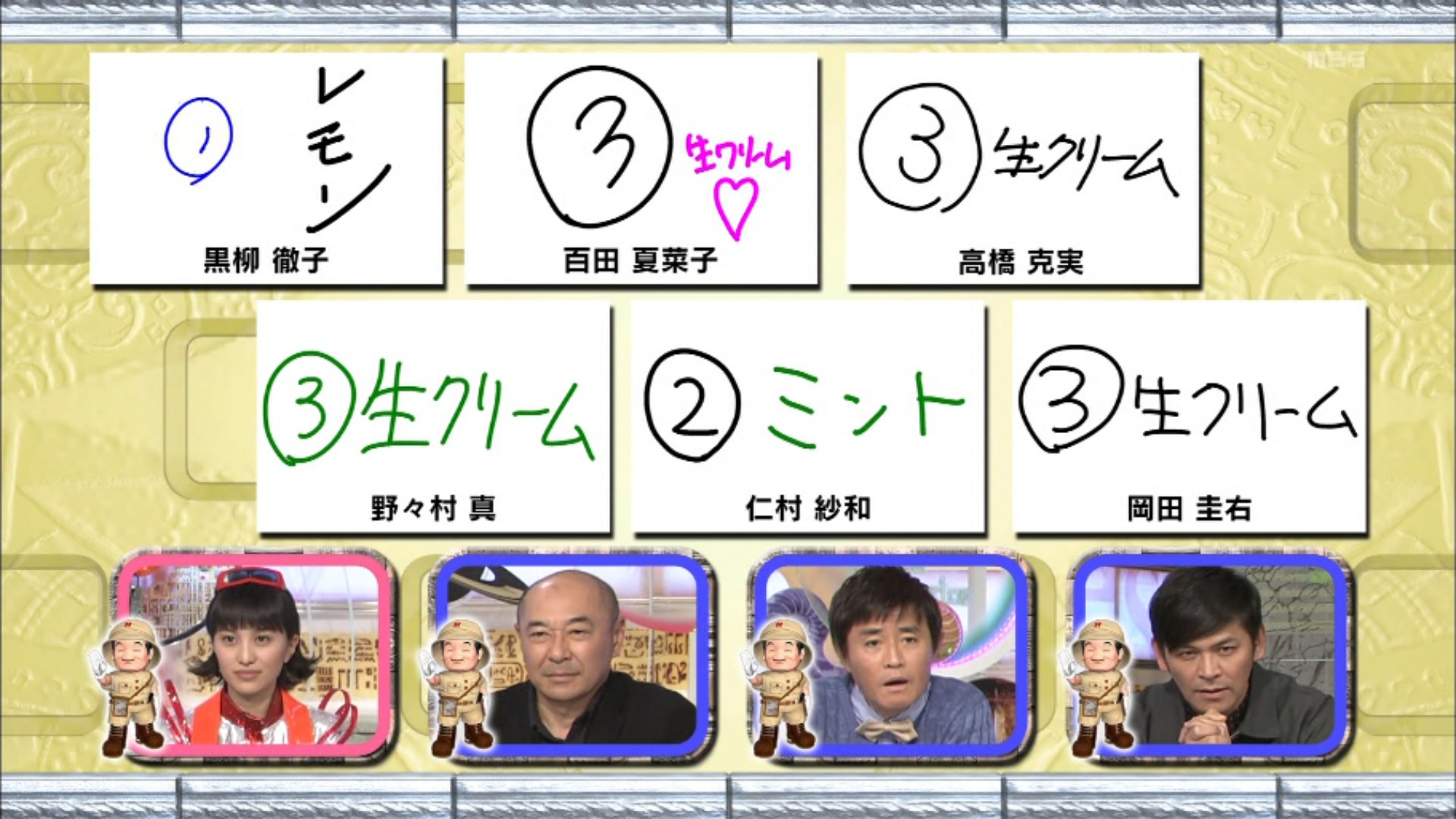 【解答者】 黒柳徹子 野々村真 高橋克実 岡田圭右 百田夏菜子 仁村紗和