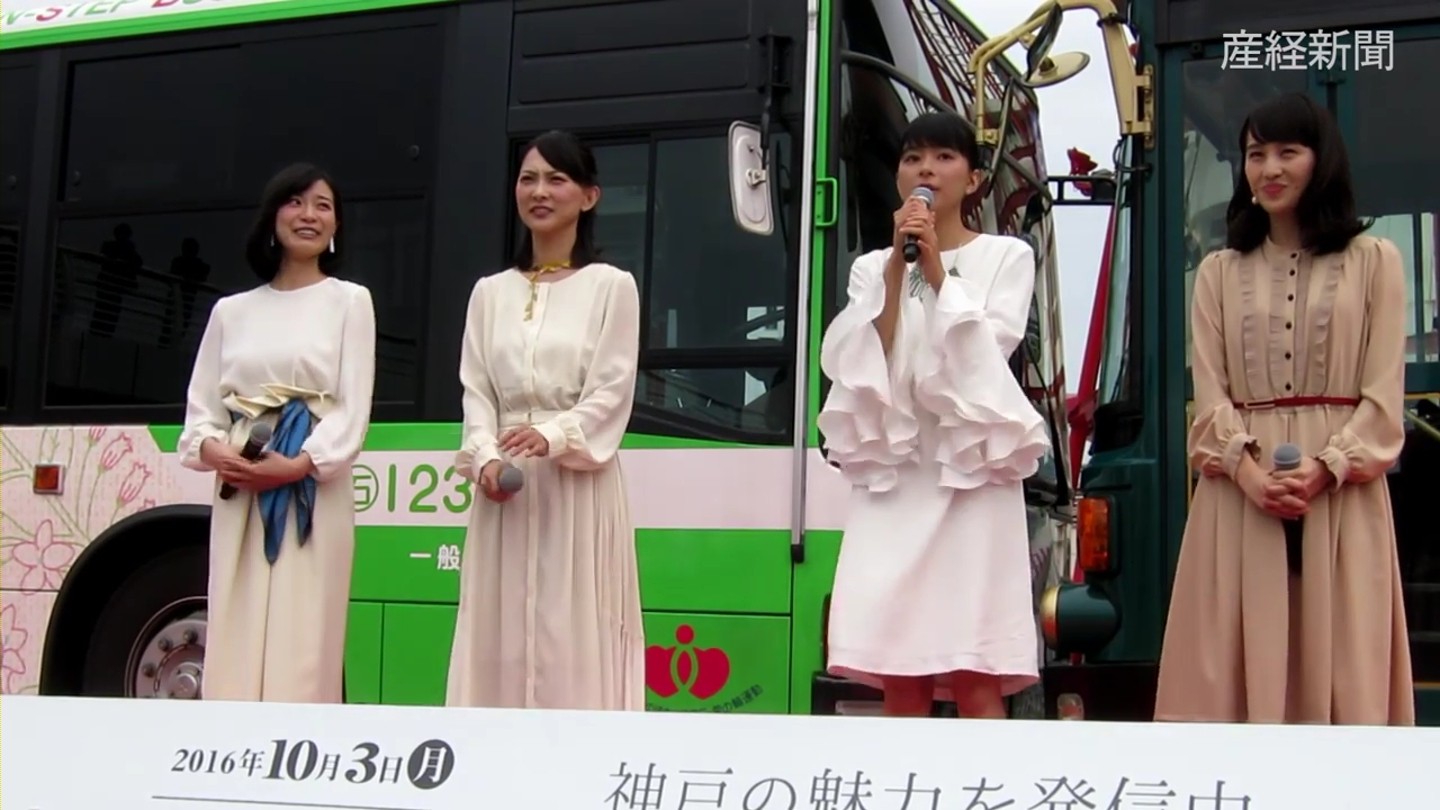 □神戸新聞NEXT|文化|「べっぴんさん」バス運航開始 芳根さんらも登場