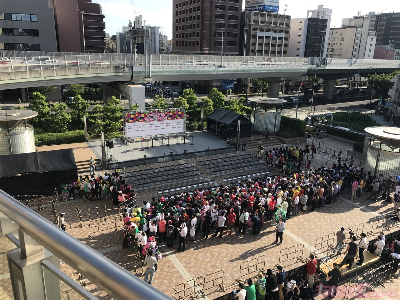 その後が当日整理券が配られた優先エリア、通路挟んだその後がフリー観覧エリアでした。