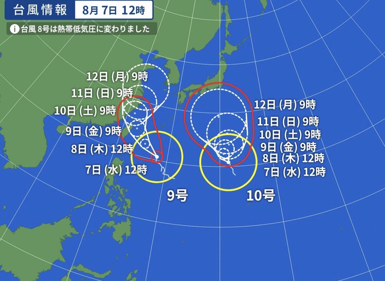 週明けの進路は定まらず□ダブル台風北上中 大型で強い台風9号は8日(木)夜に先島諸島へ(ウェザーニュース) - Yahoo!ニュース