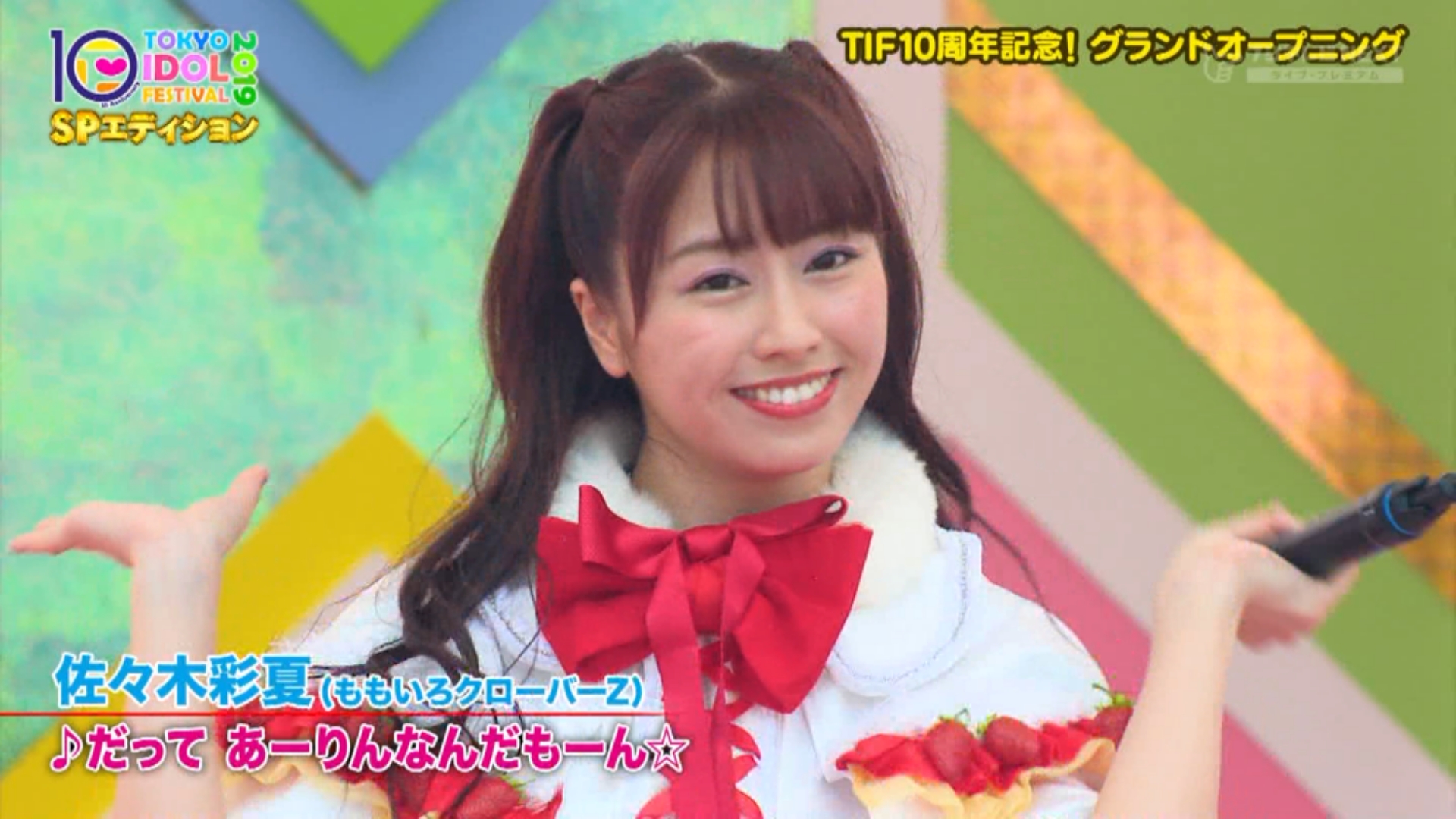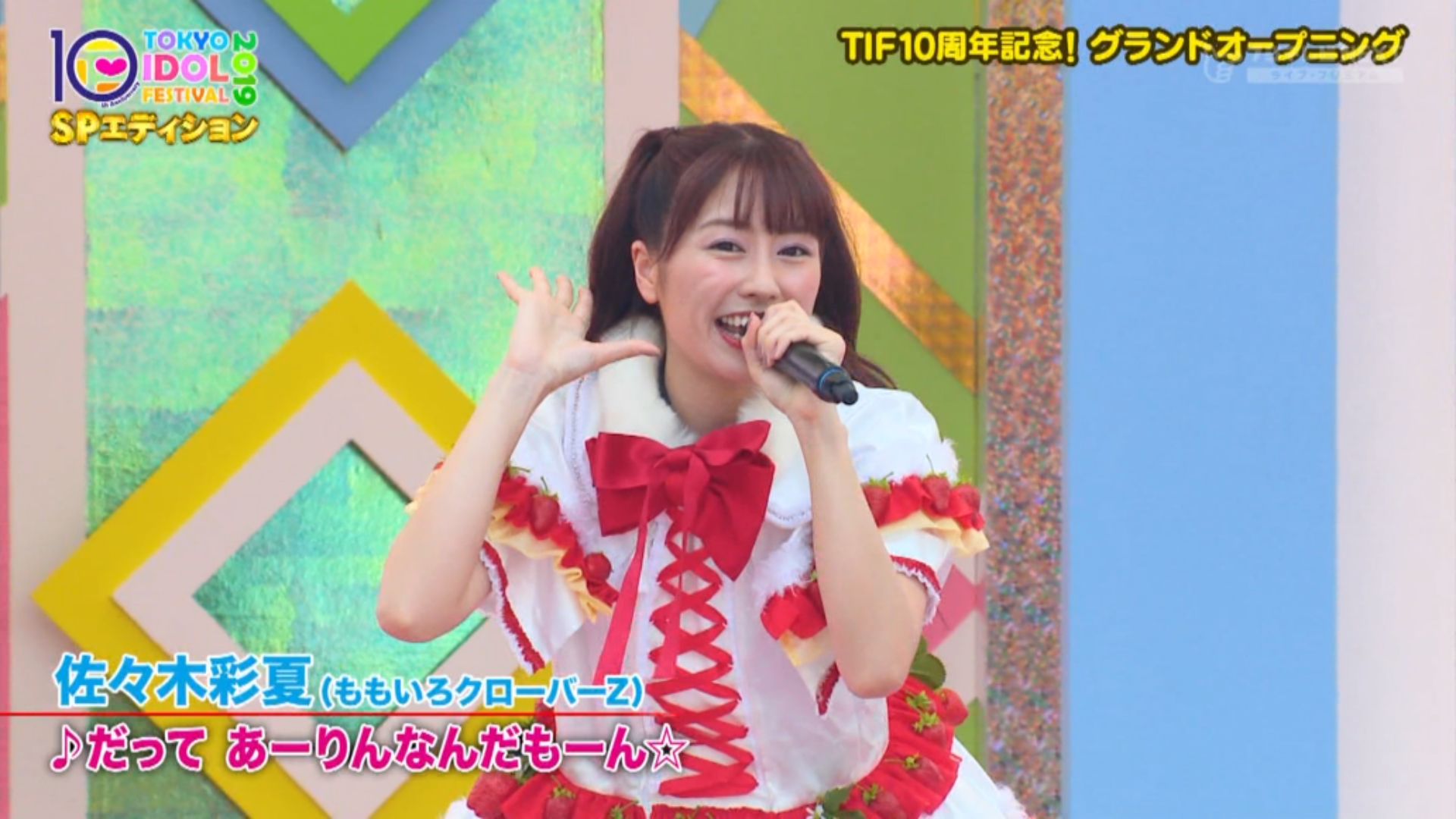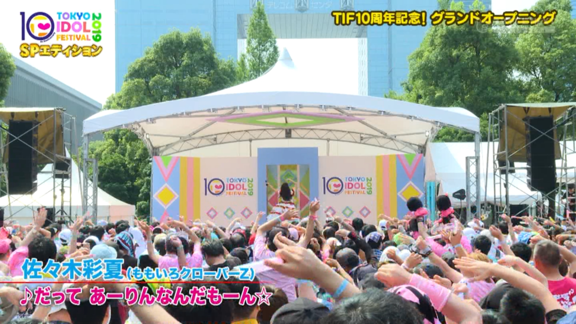 本日フジテレビNEXTでTOKYO IDOL FESTIVAL 2019 SPエディション #1 が放送され本編と同じく佐々木彩夏の「だって あーりんなんだもーん」からスタート!